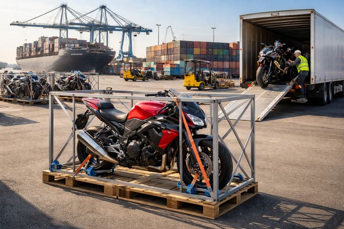 Transit time for international motorcycle shipping depends on destination region, container availability, routing, and customs processing. Ocean freight shipments typically take several weeks, while air freight options offer significantly faster transit for time-sensitive shipments. Exact timelines vary by route and are influenced by port schedules and destination country requirements.